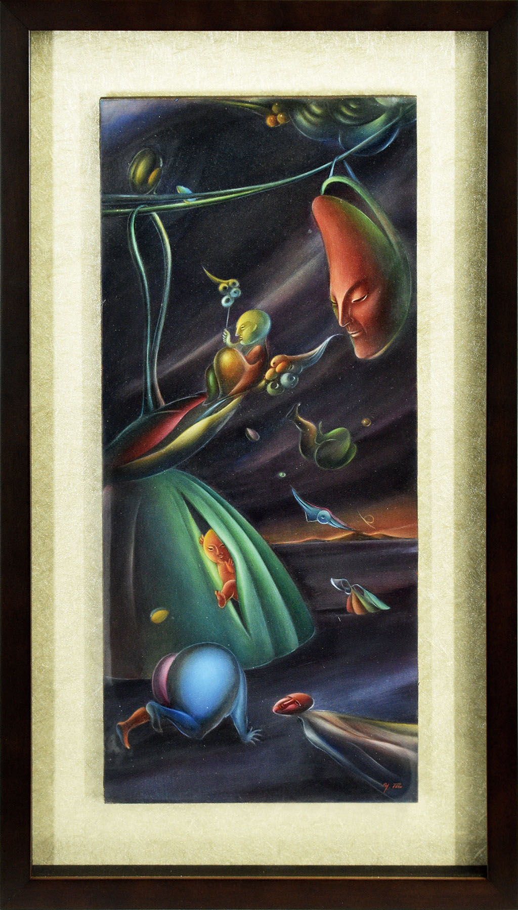 油彩 テンペラ ボード サイン Aoki Galleryシール 45×20 F:58×33 額装