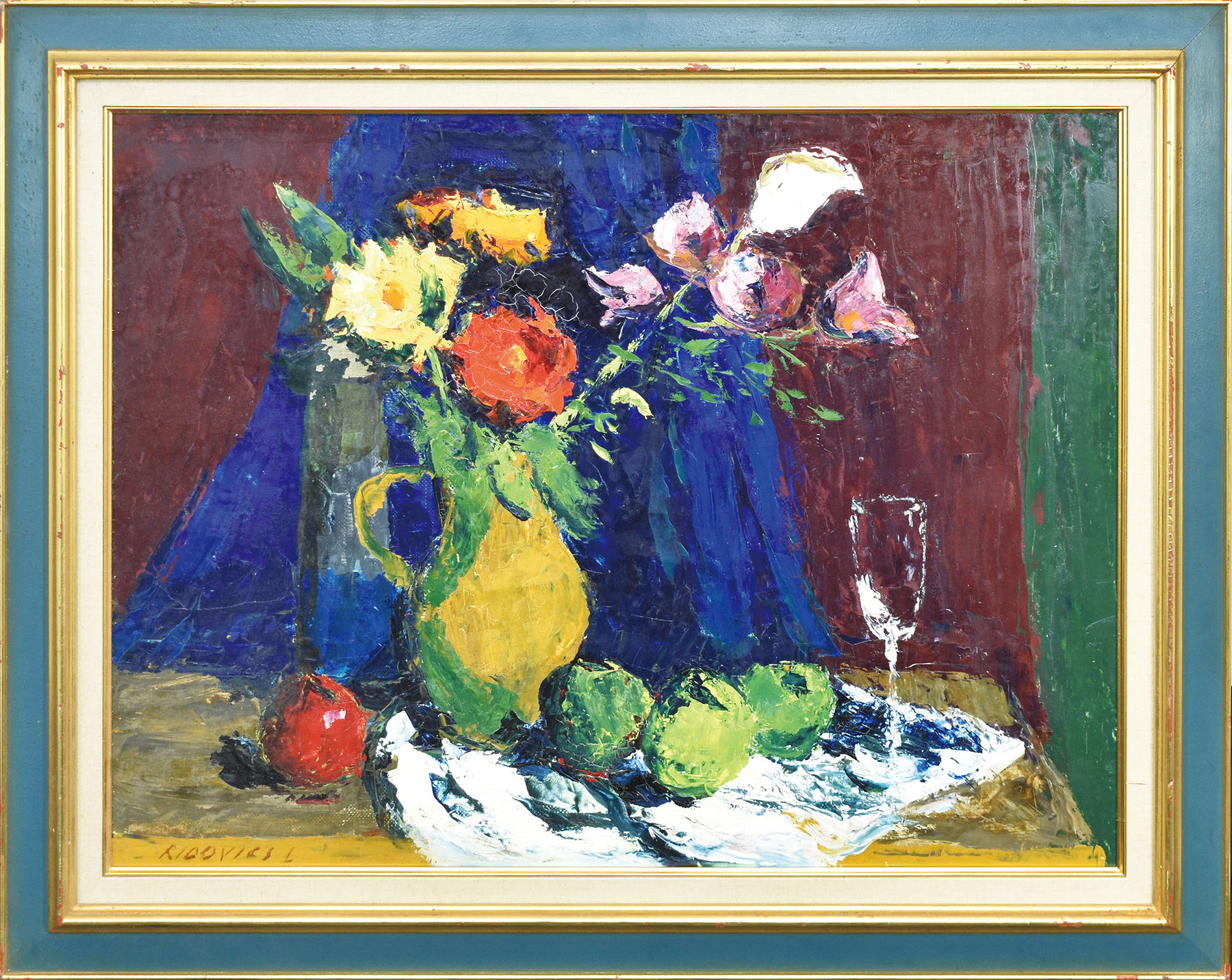 油彩 キャンバスボード サイン 現代東ヨーロッパ絵画シール 59×79 F:76.7×96.5 額装