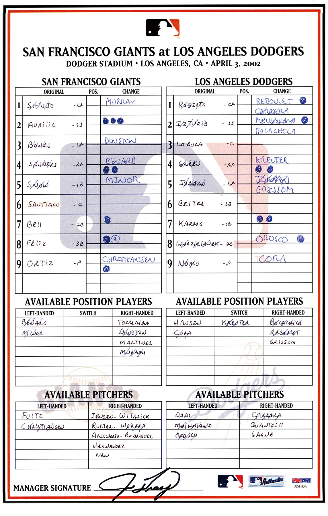 試合実使用(2002.4.3) 野茂英雄、新庄剛志記載 PSA/DNA証明書、カード付