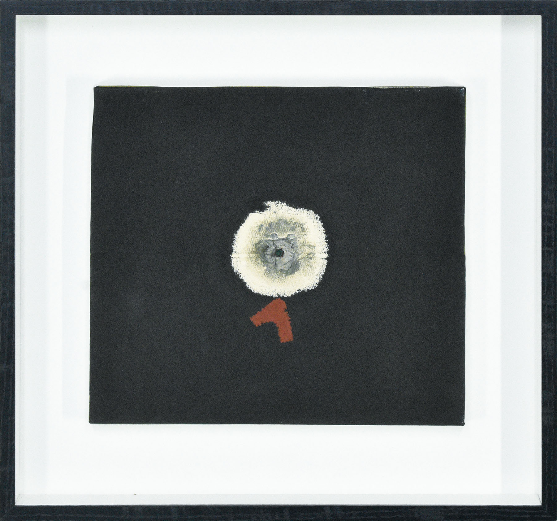 ミクストメディア 布 裏にサイン、タイトル、年記 東邦画廊シール 28×30.5 F:43×46 額装 「菅創吉画集(用美社)」No.171掲載