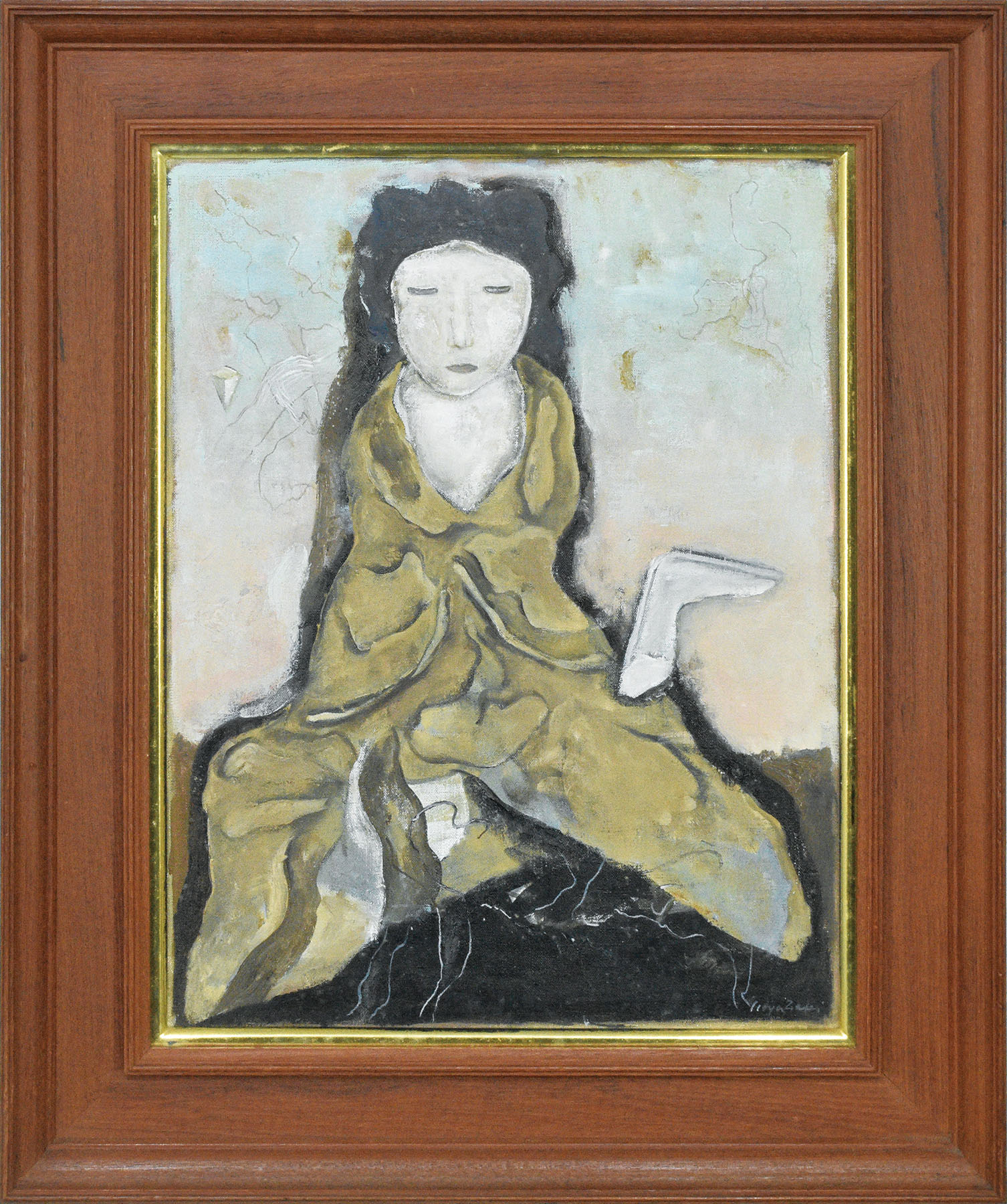 油彩 キャンバス サイン 裏にタイトル 40×31 F:55×46 額装