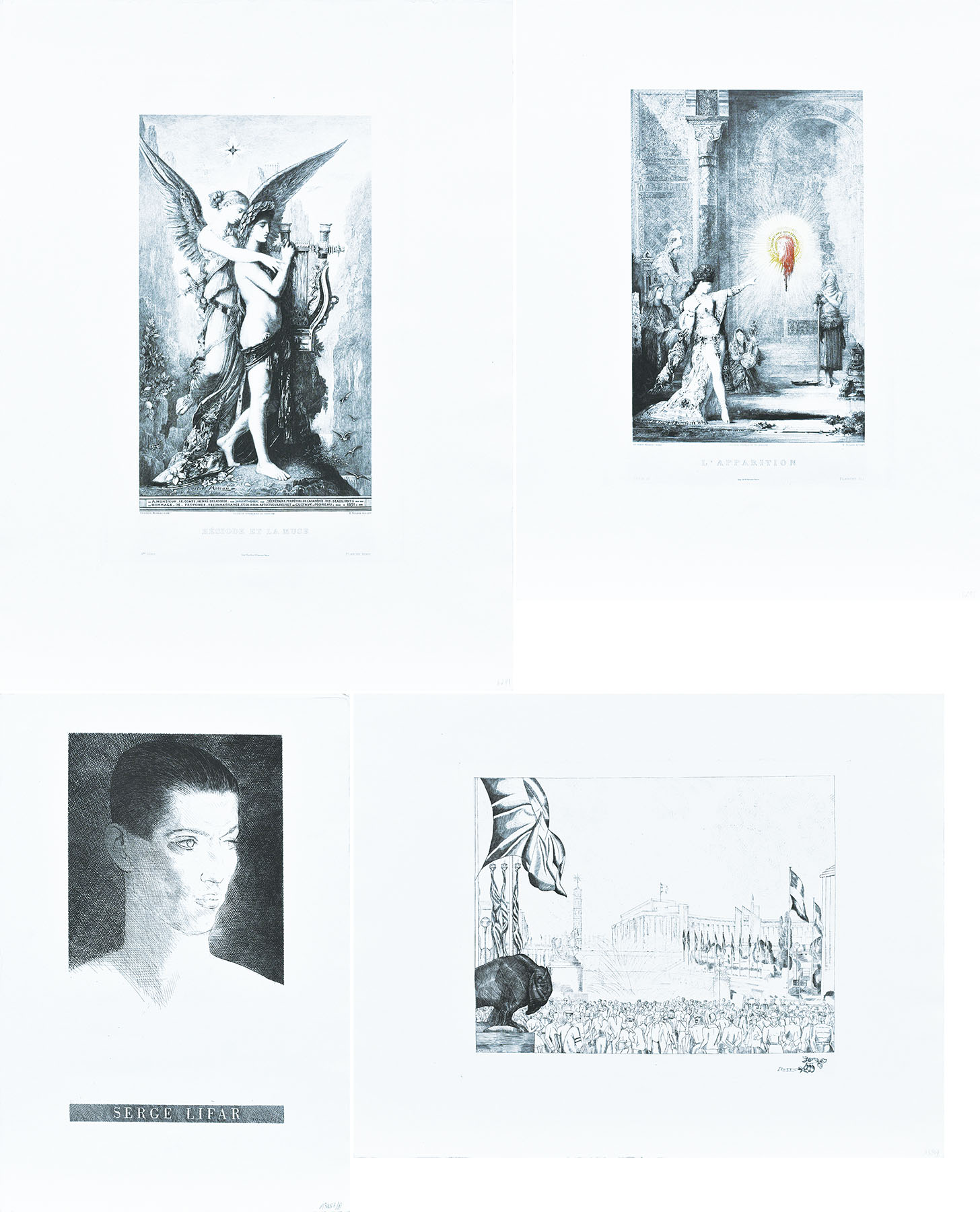 | 解説 | モロー「ヘシオドスとミューズ」 ヘリオグラヴュール 53×32.6 S:76×56.5 モロー「出現」 ヘリオグラヴュール 46×31 S:66×51 モロー「オルフェ」 ヘリオグラヴュール 44×30 S:75.7×56.2 マルクーシ「SERGE LIFAR」 銅版画 42.5×23.5 S:57×38.5 ラブルール「トロカデロ広場」 銅版画 35×43 S:51×65 |