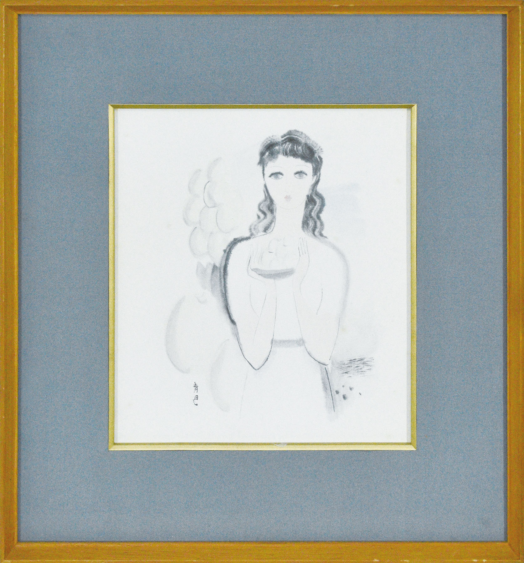 水彩 色紙 サイン GINZA絵画館シール 「東郷青児鑑定委員会」鑑定書付 26.5×23.5 F:44.2×41.1 額装