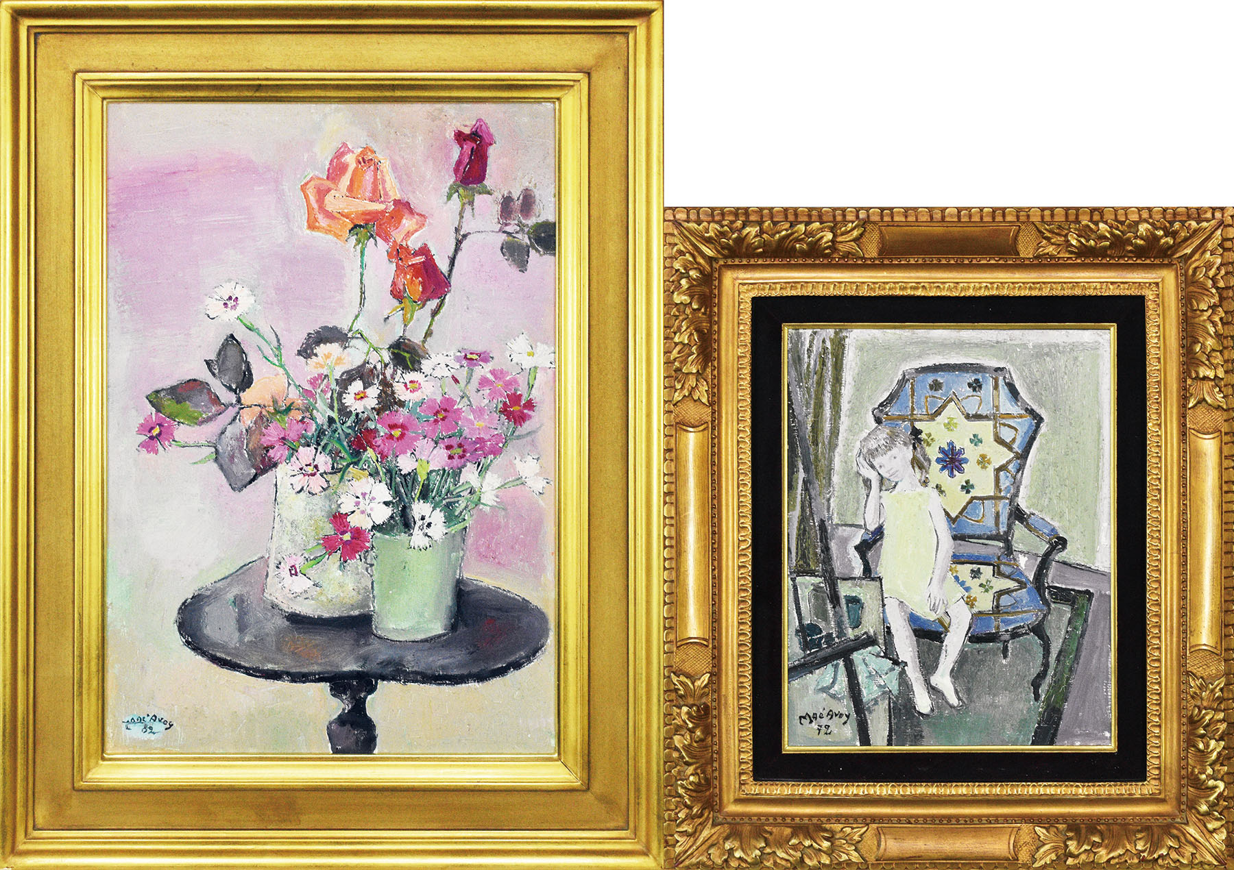 「赤いバラとカーネーション」 油彩 キャンバス サイン 53.8×36.8 F:71.5×54.5 額装