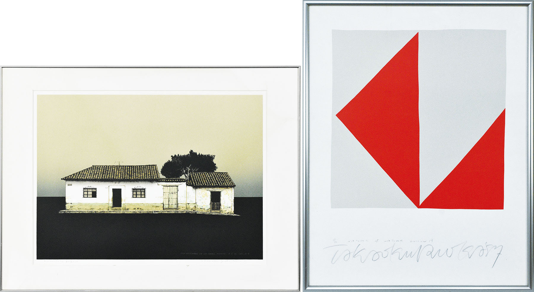 吉田穂高「私のコレクションより 白い家 C,M」リトグラフ 限100 サイン、タイトル、年記 40×55 F:55×73 額装 1980 アクリル板無