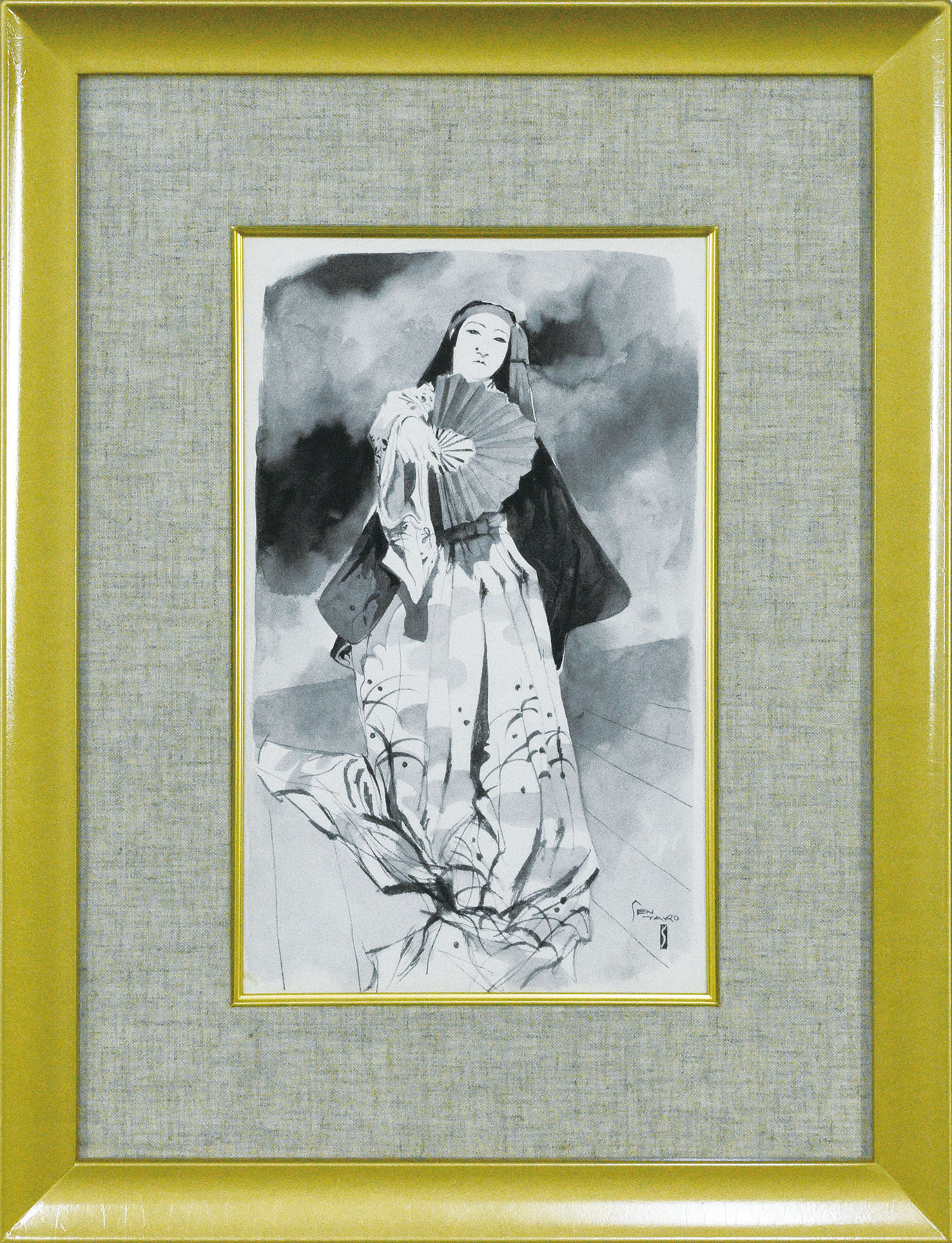 墨 紙 サイン 29.5×18 F:48.3×37 額装