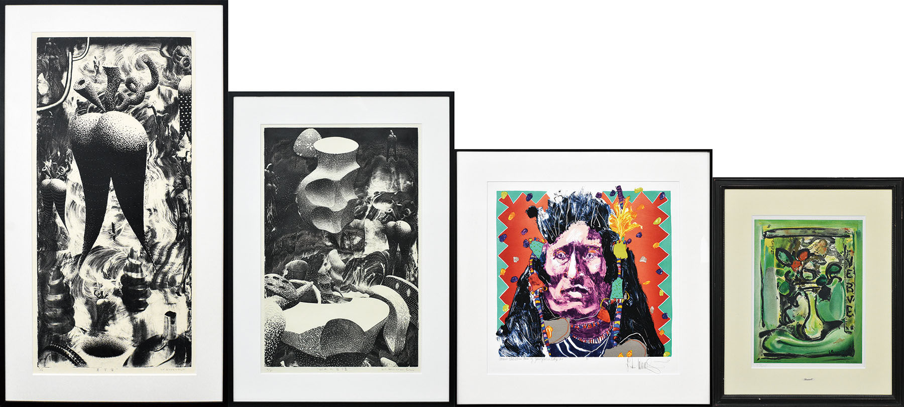 | 解説 | 倉地比沙支「草宇宙」 リトエッチング 限15 サイン、タイトル 90×42 F:111.3×62.3 額装 倉地比沙支「H氏の肖像」 リトエッチング 限15 サイン、タイトル 65.5×42 F:86.3×61.8 額装 レスリー・ワッセルバーガー「作品」 リトグラフ サイン 46.5×47.8 F:70.5×70.5 額装 ジョルジュ・ルオー「VERVE」 リトグラフ 限475 39×29.5 F:62.8×52.3 額装 |