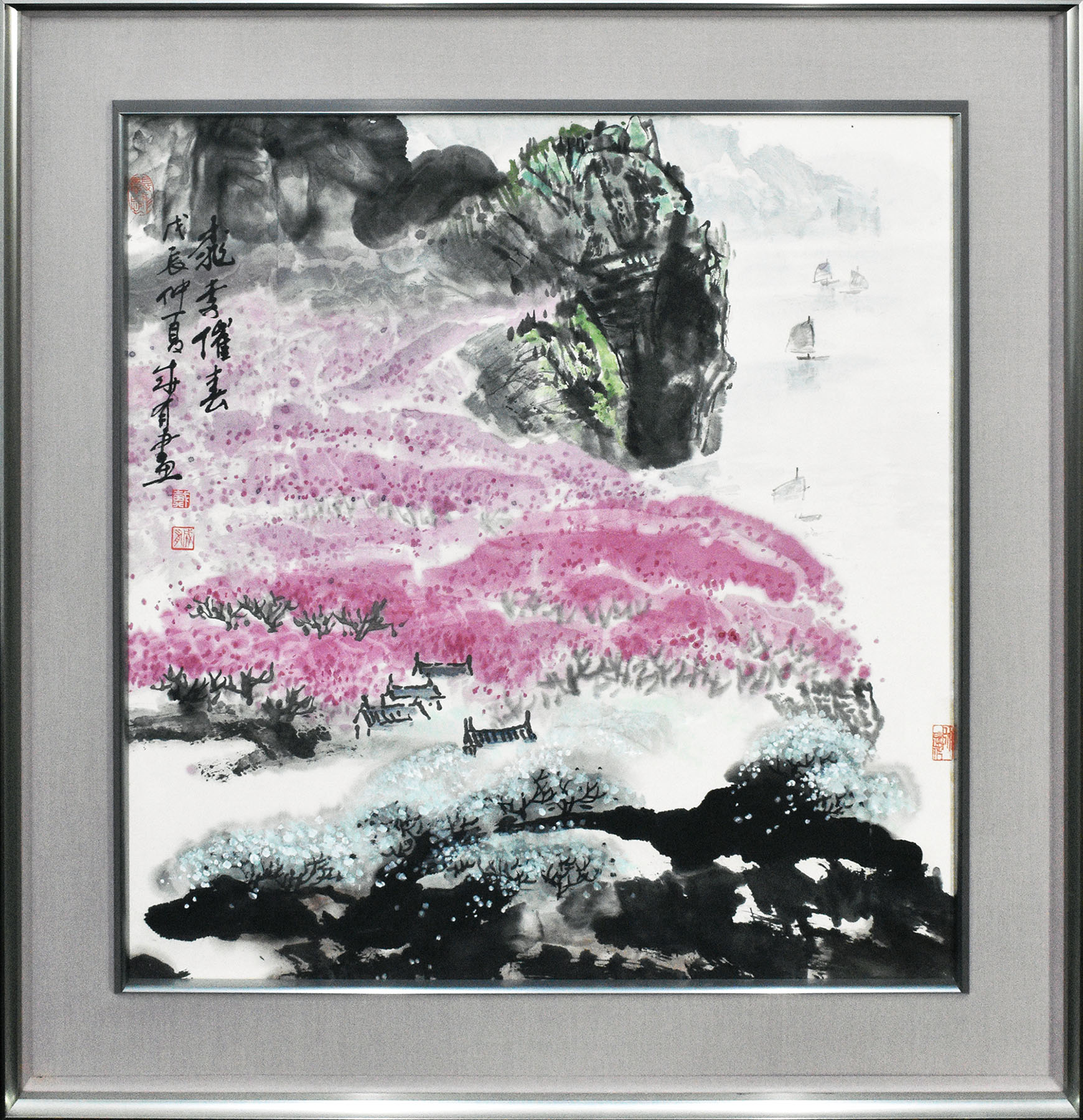 彩色 和紙 サイン、印 68.5×65 F:89.8×86.8 額装
