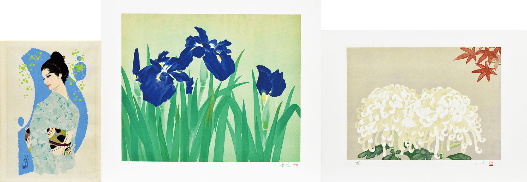 岩田専太郎 木版画3枚 限480 各約S:42×30 ヤケ、1枚にシミ