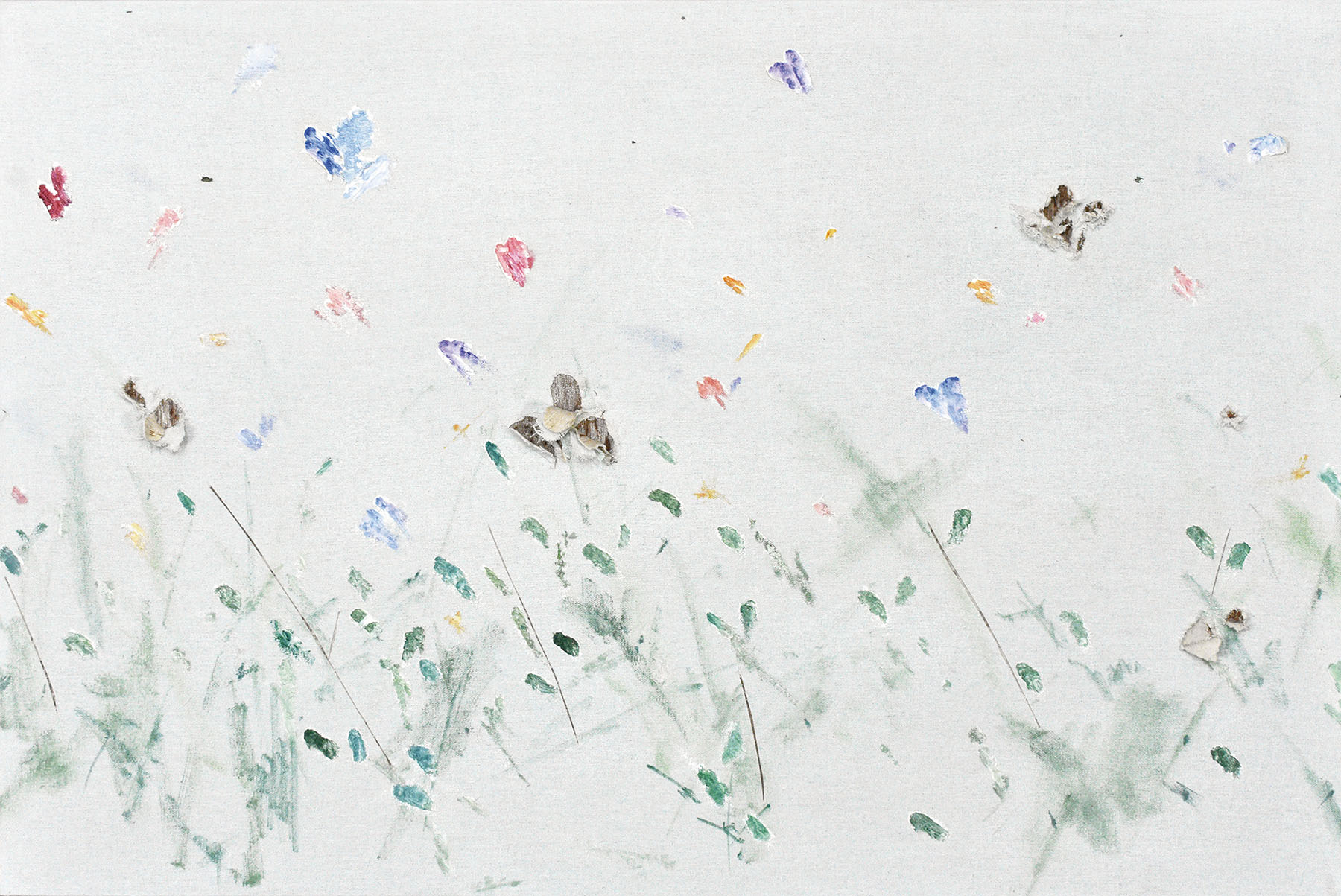 油彩 リネン コットン パネル 裏にサイン、タイトル、年記 歩歩琳堂画廊シール 60..8×91