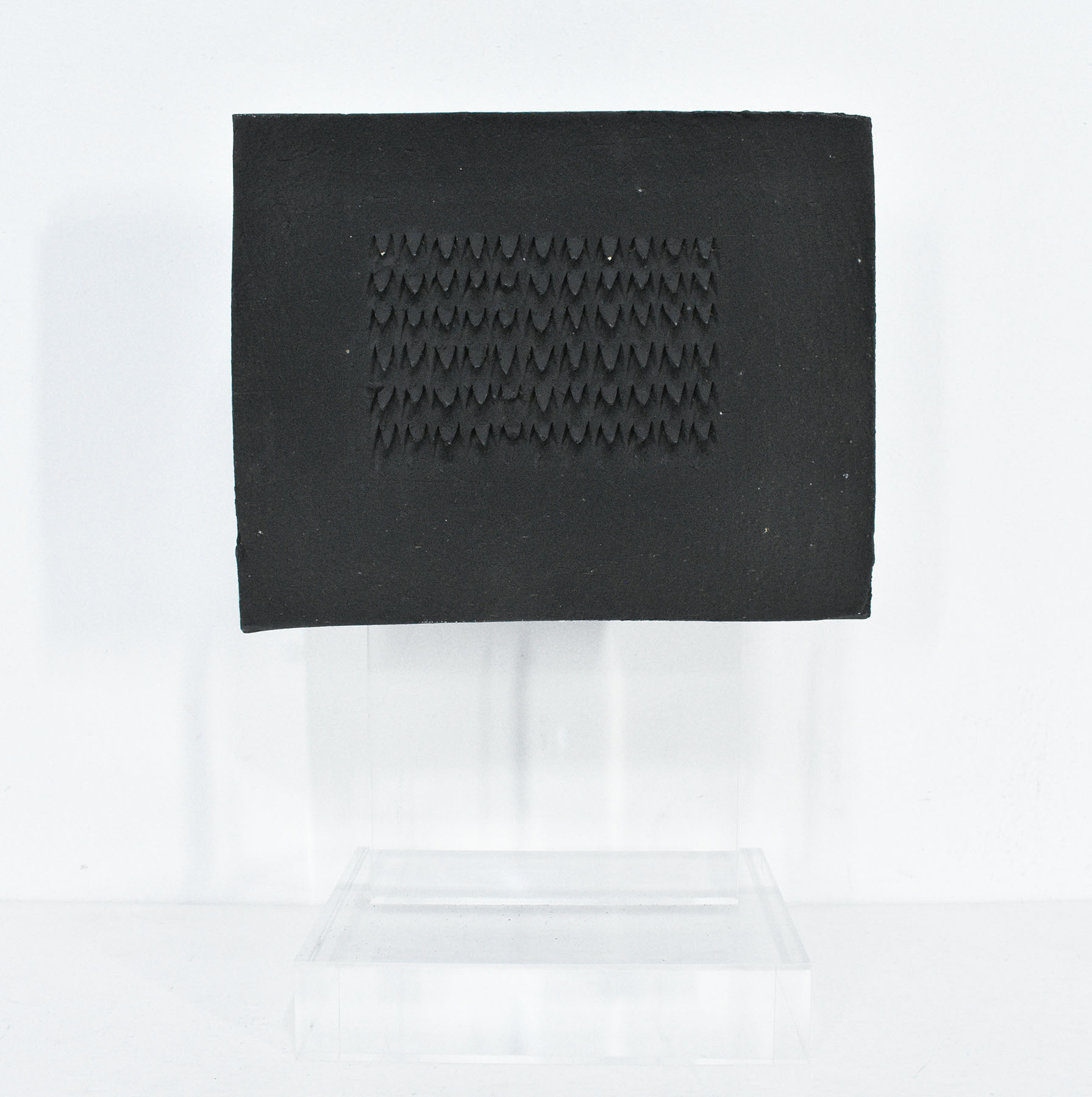 セラミック 裏にサイン、年記 16×20×1.7 台座付