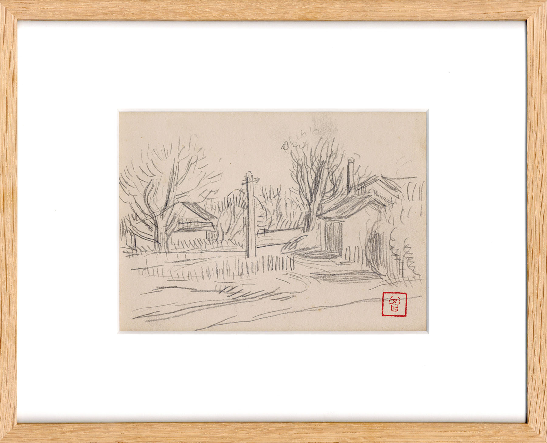 鉛筆 紙 印 裏に画廊印 13×17.8 F:25.8×32 額装