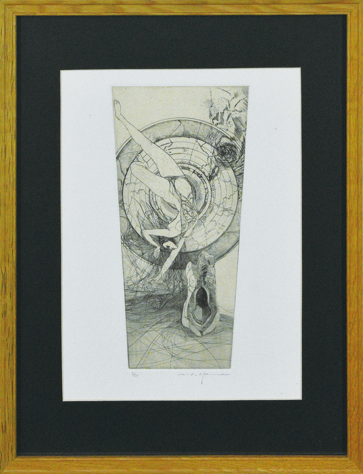 銅版画 限50 サイン 23.7×11.5 F:39.8×30.5 額装