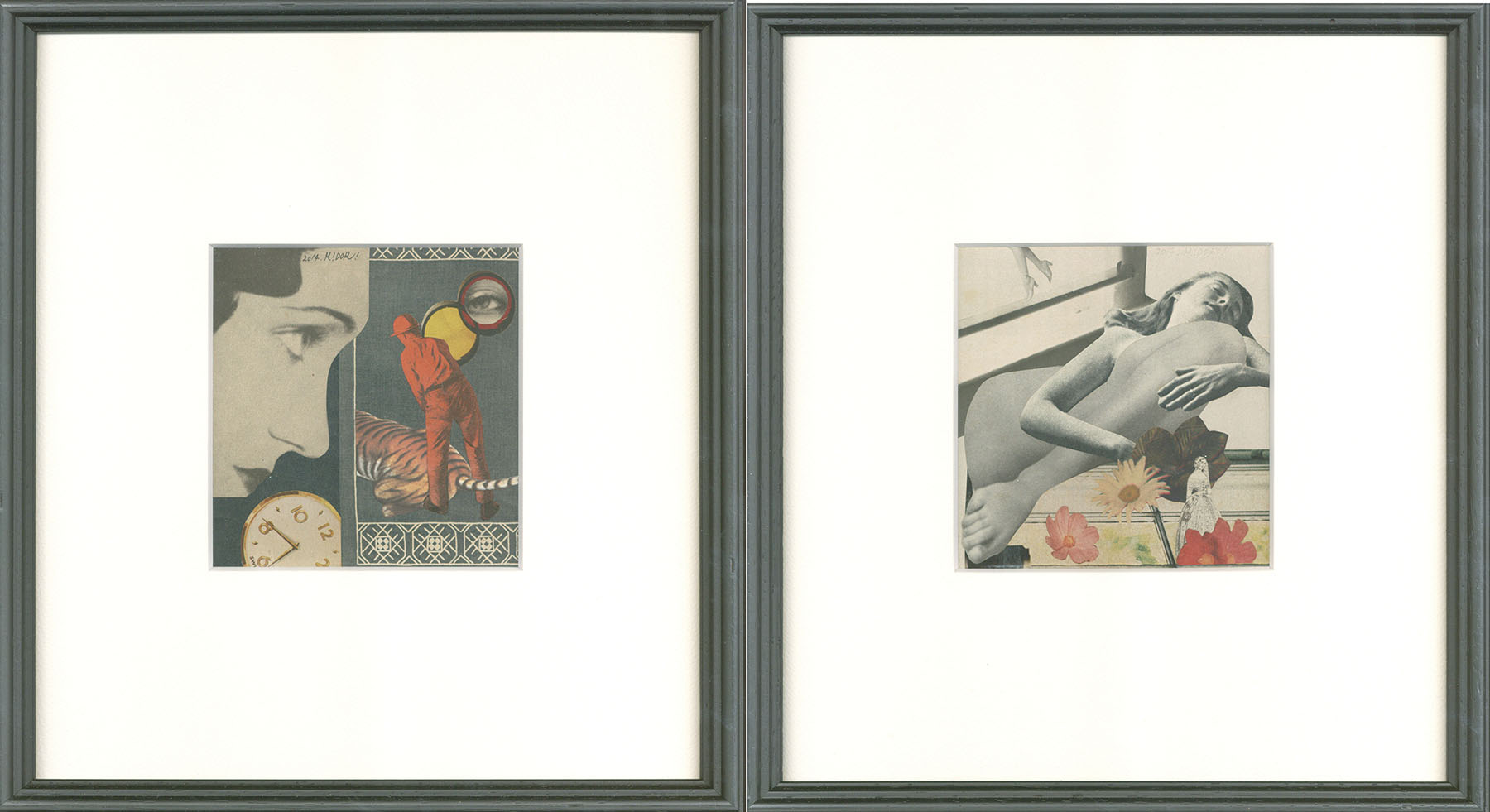 「誘惑」 コラージュ サイン、年記 LIBRAPIE6シール 11.5×11.5 F:30.3×37.8 額装 2014