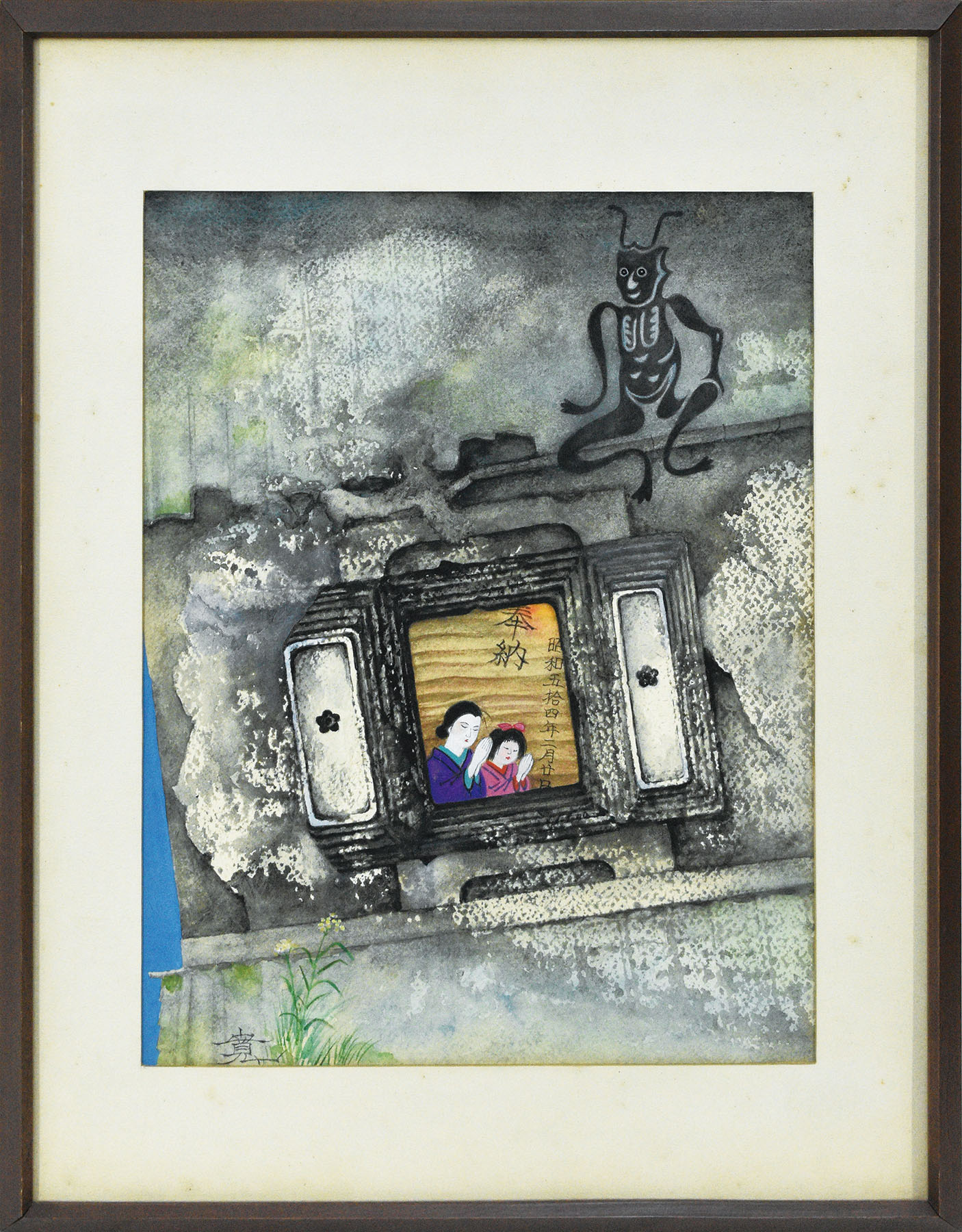 水彩 紙 サイン、年記 38×29 F:53.5×41.8 額装