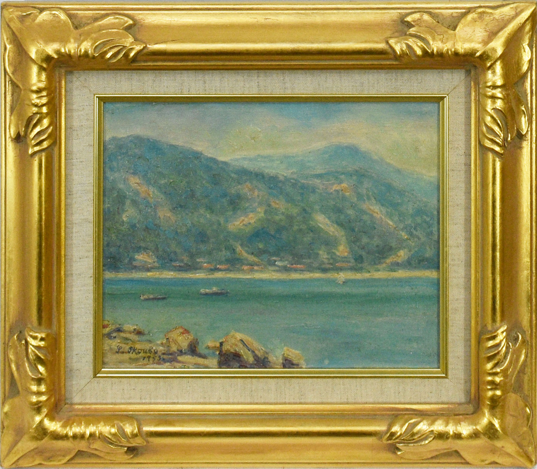 油彩 キャンバス サイン、年記 共シール 21×26 F:36.7×42 額装