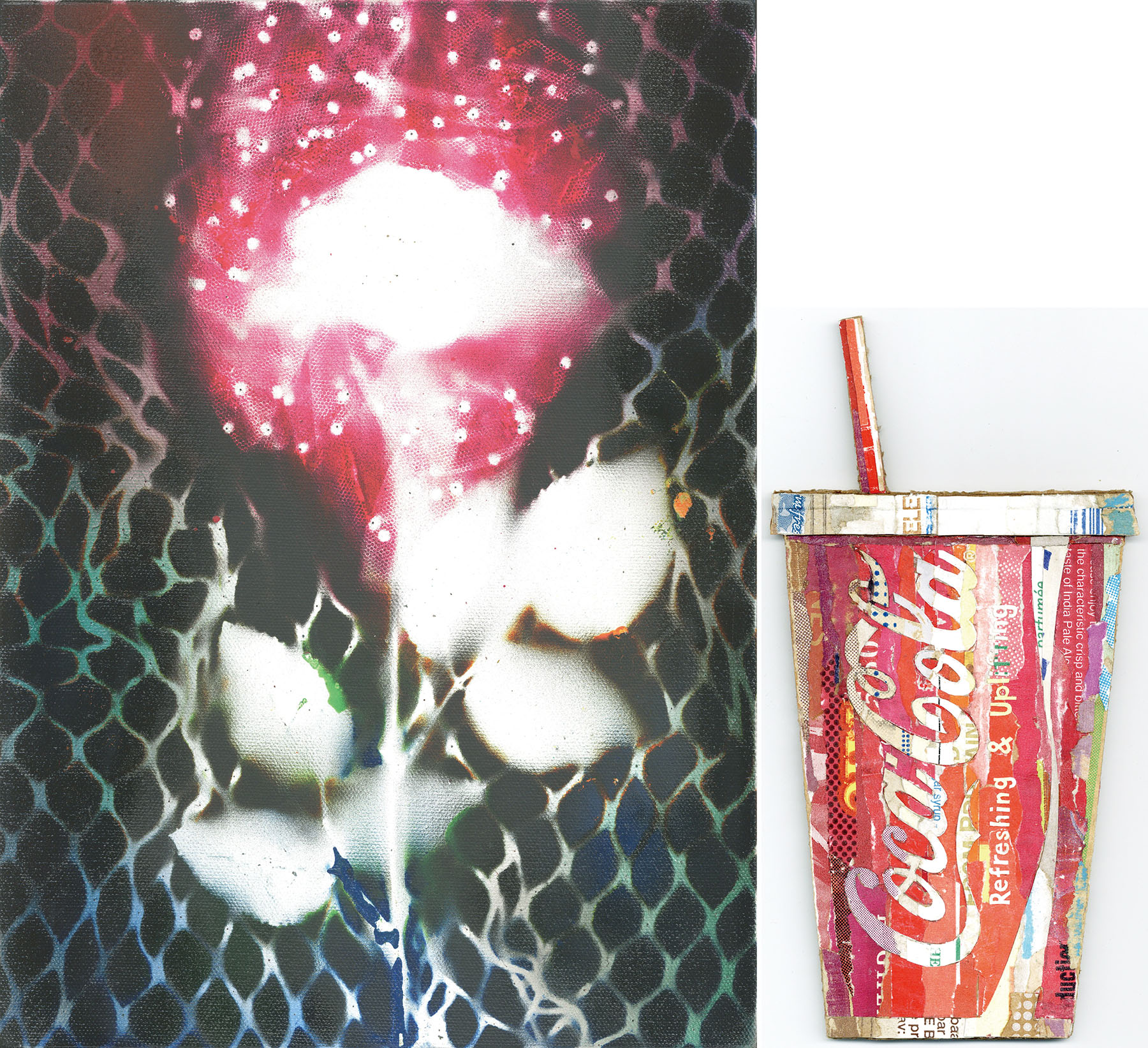 儀間朝龍「CocaCola」 コラージュ ダンボール 裏にサイン、年記 23×11.7