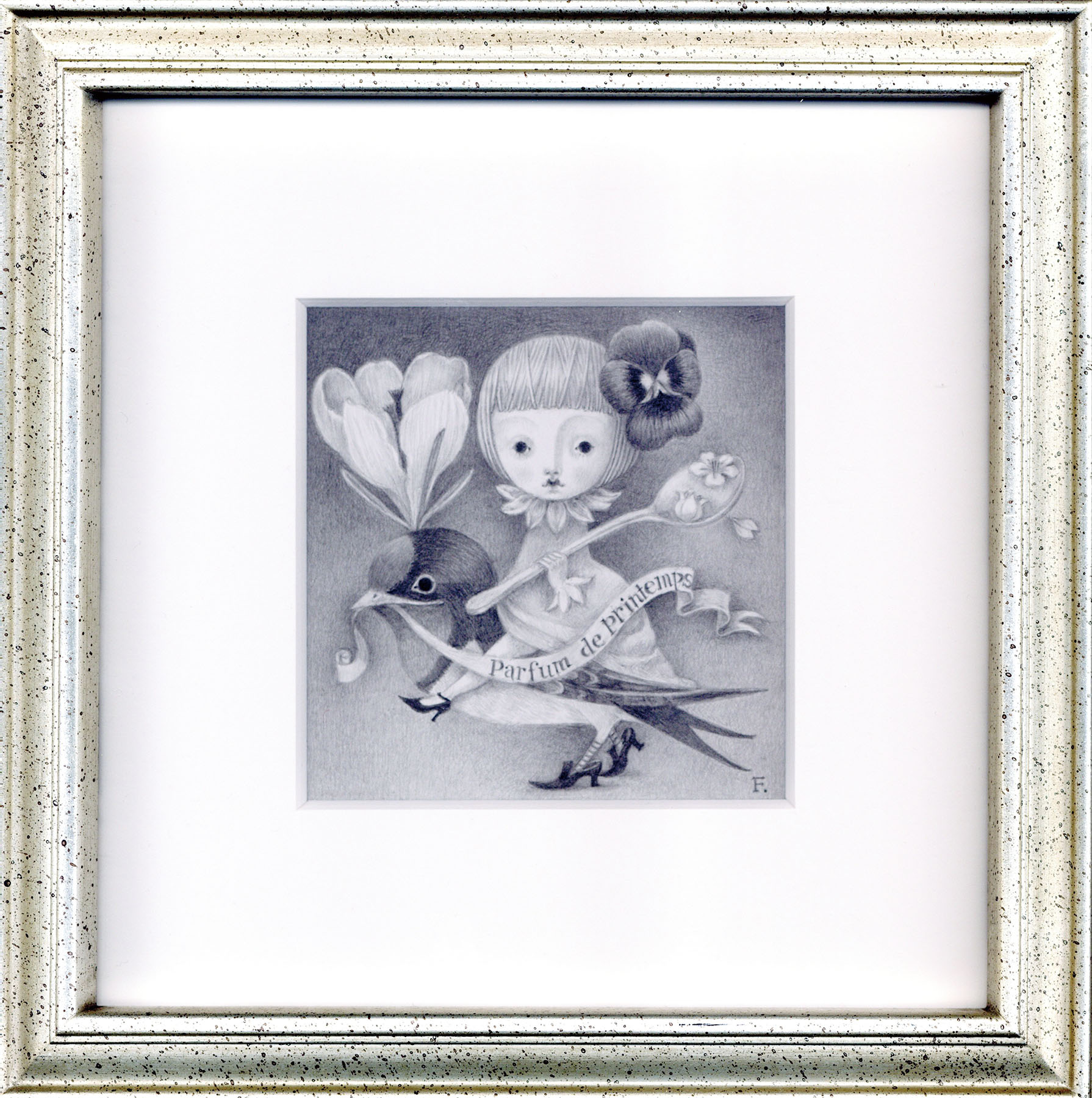 鉛筆 ケント紙 ボード サイン 10.3×10.3 F:23.4×23.4 額装