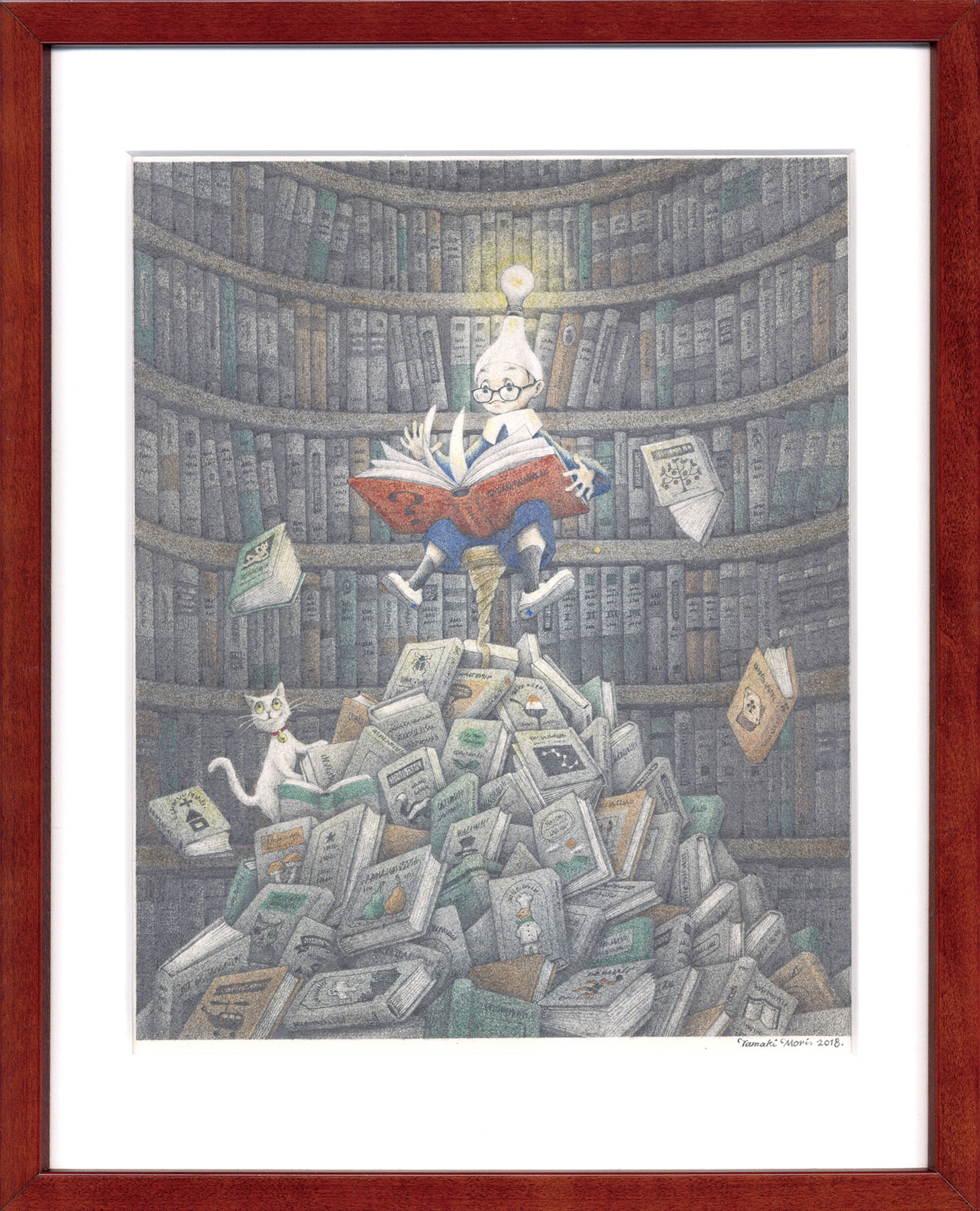 色鉛筆 紙 サイン、年記 23×19 F:32×25.8 額装