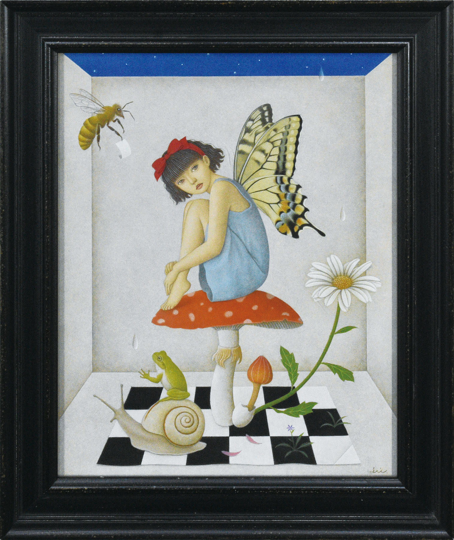 油彩 テンペラ ボード サイン 青木画廊シール 30.5×24.5 F:38.6×32.5 額装