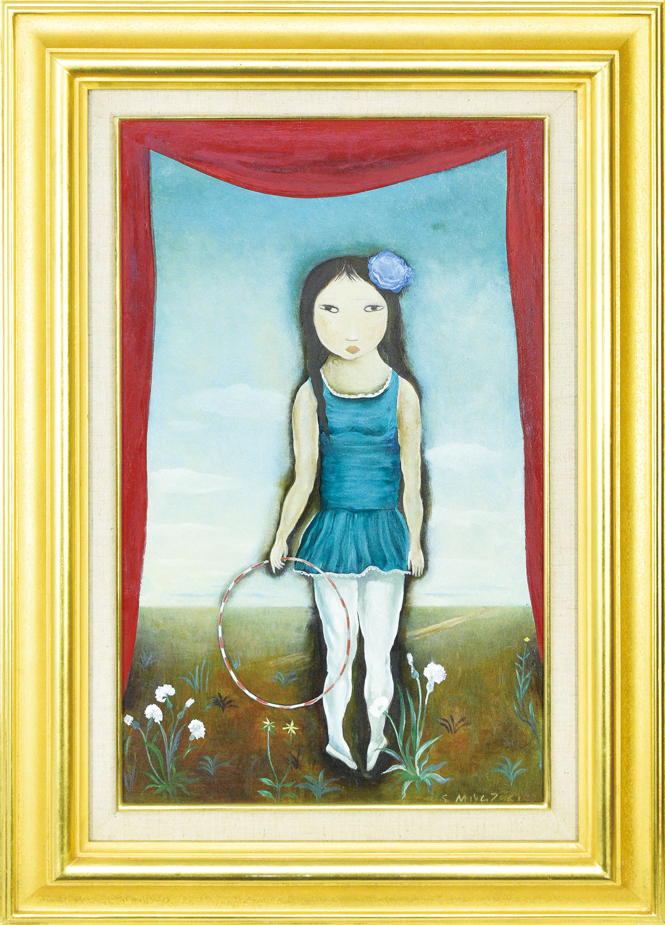 油彩 キャンバス サイン 日動画廊シール 51.5×32 F:70.2×50.5 額装