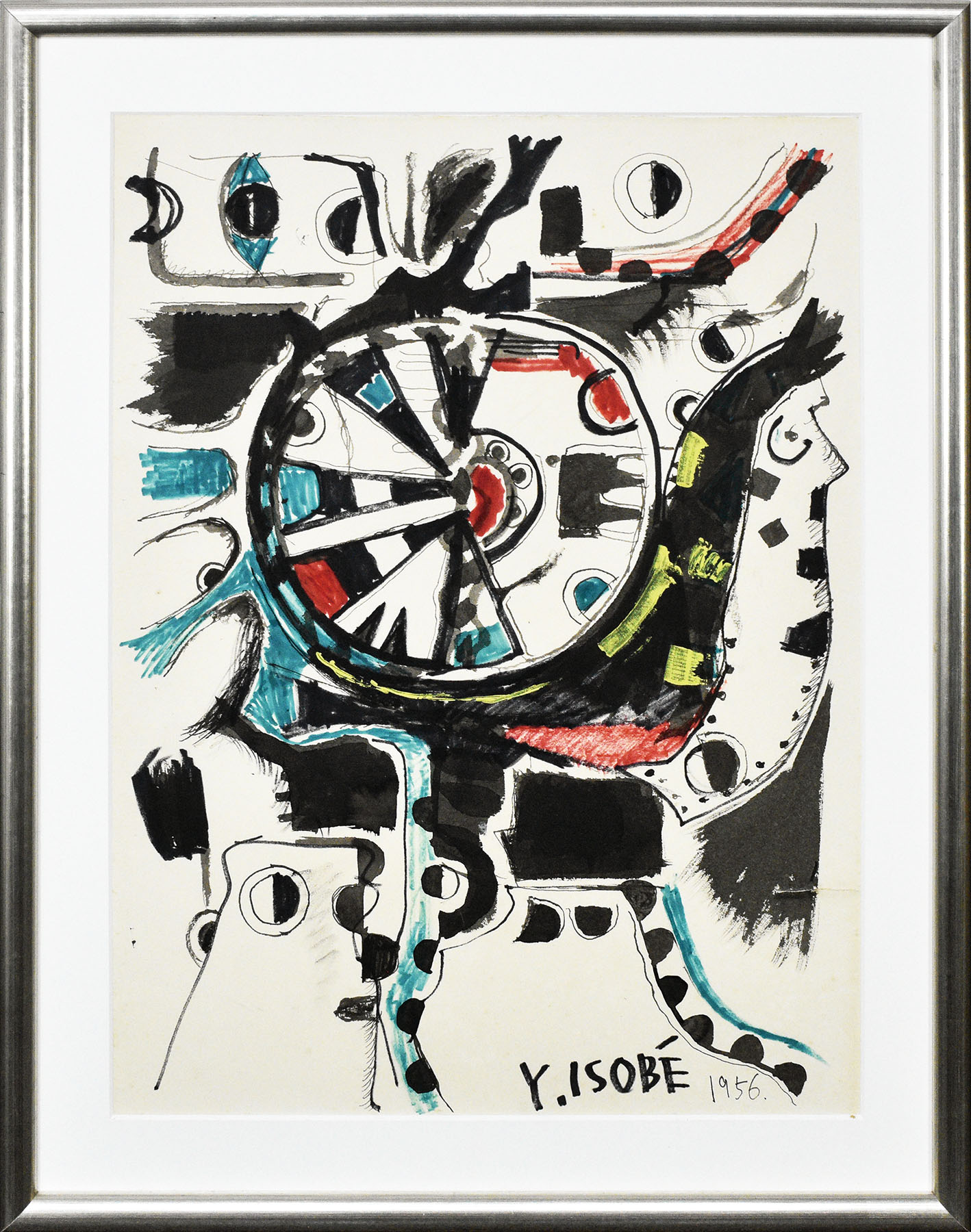 水彩 インク 紙 サイン、年記 72.5×54 F:89.5×70.5 額装