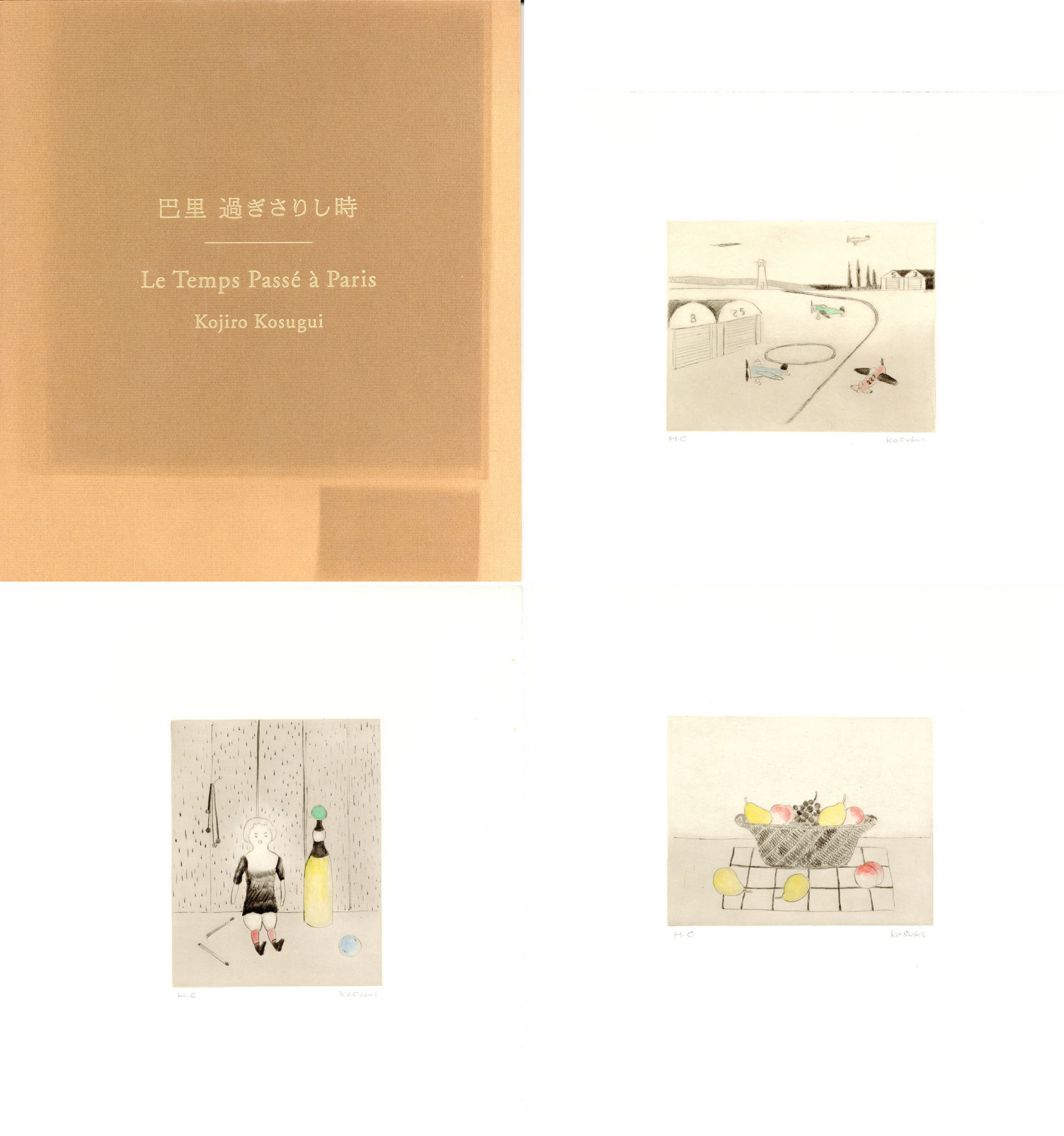 日本経済新聞社 HC版 銅版画3枚(手彩色 各サイン S:25×28) 帙