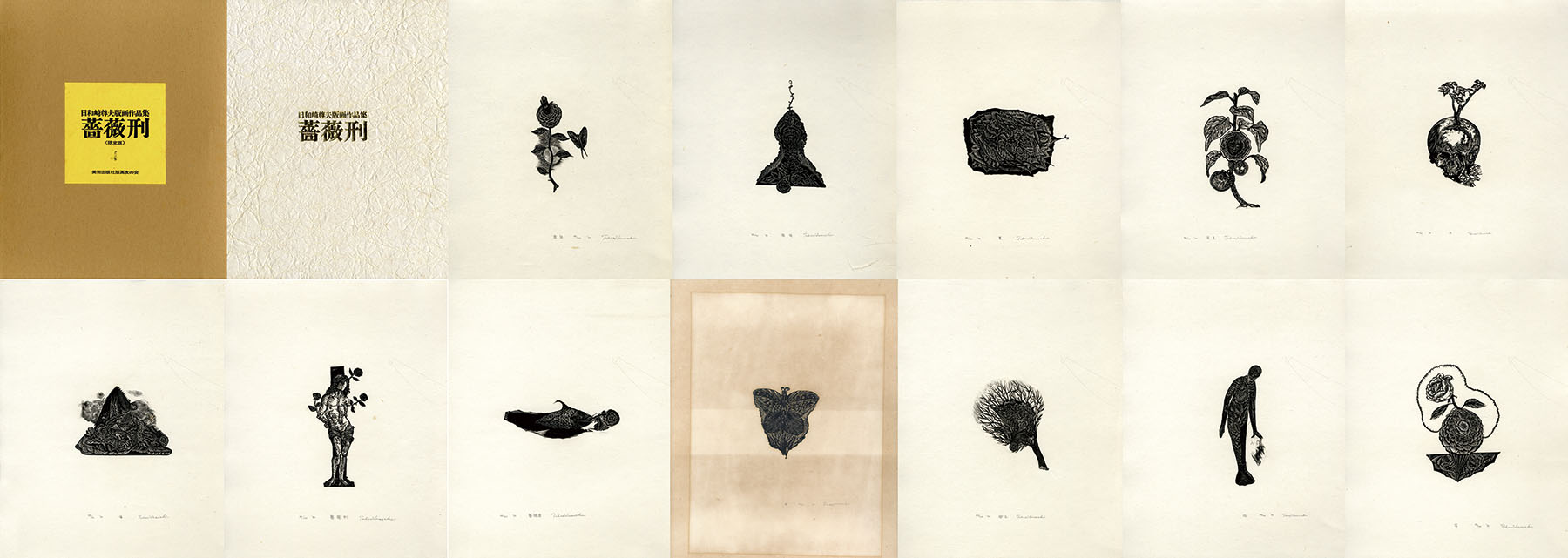 美術出版社版画友の会 限100 自刻自摺木口木版12枚(各サイン、タイトル ヤケ) 帙 函